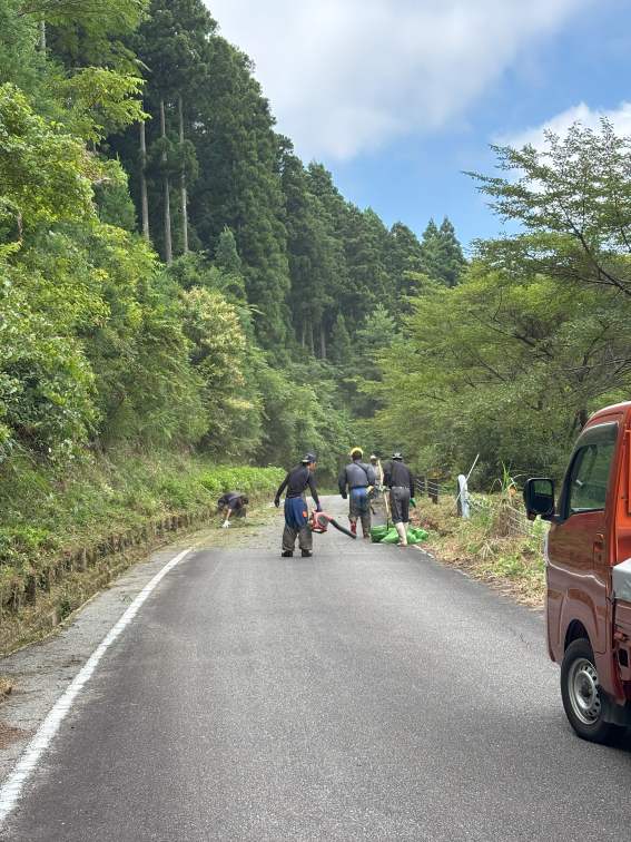 令和7年8月3日、今年も越知川の越知~大畑区間に植栽してあるアジサイの手入れを行いました。